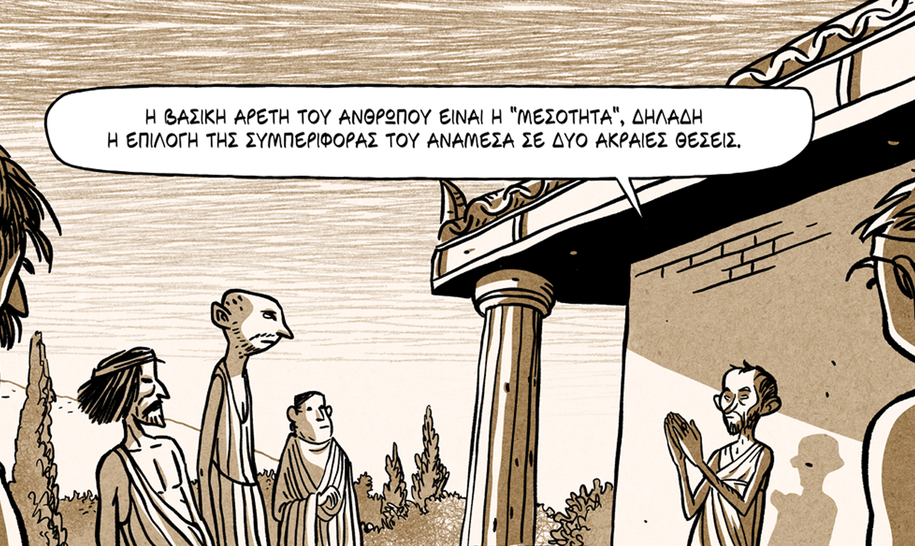 To graphic novel «Αριστοτέλης» εξιστορεί μέσα από τα κείμενα του Τάσου Αποστολίδη και την εικονογράφηση του Αλέκου Παπαδάτου τη ζωή και τη σκέψη του φιλοσόφου