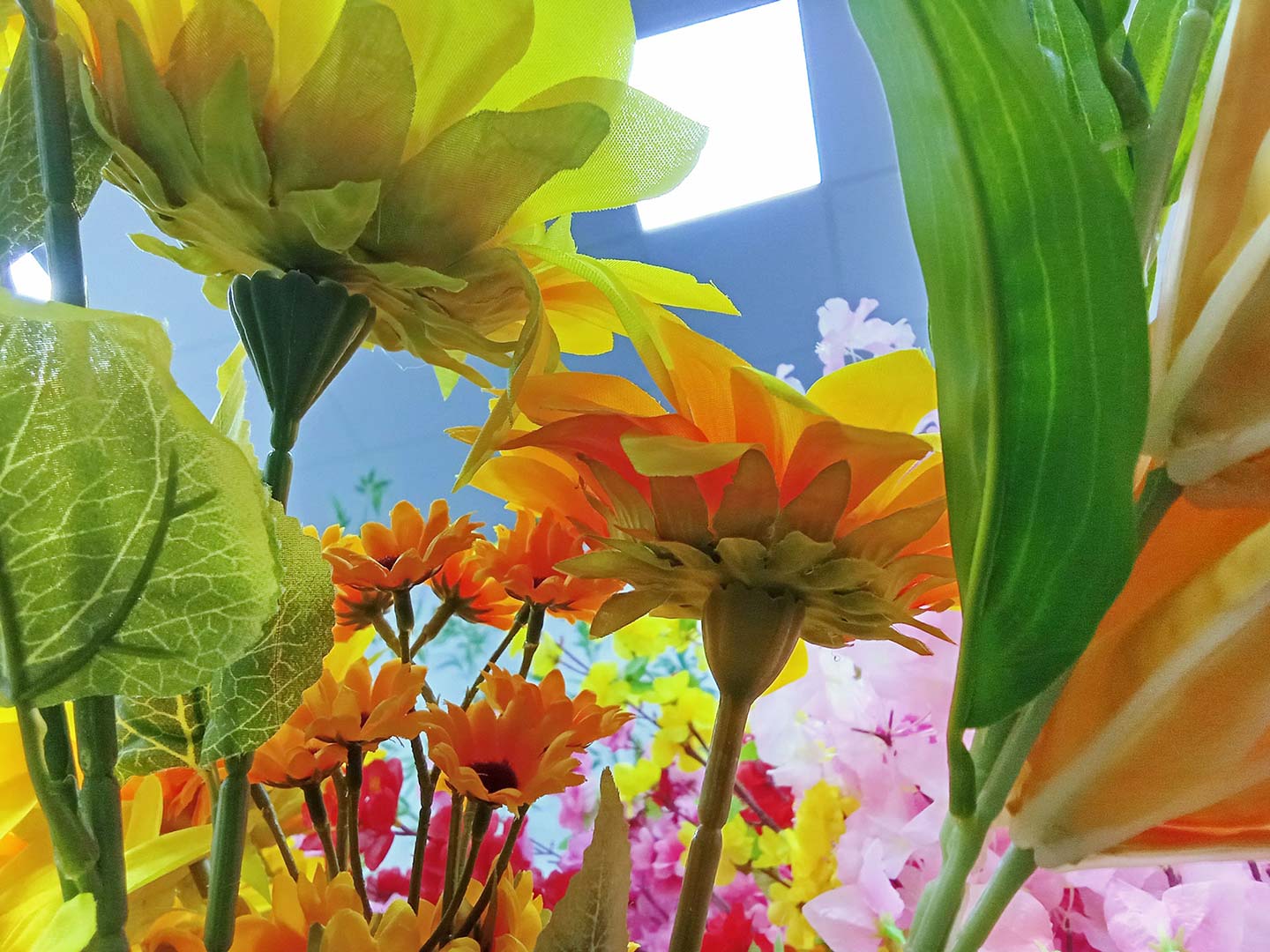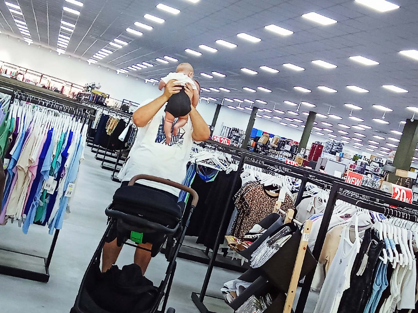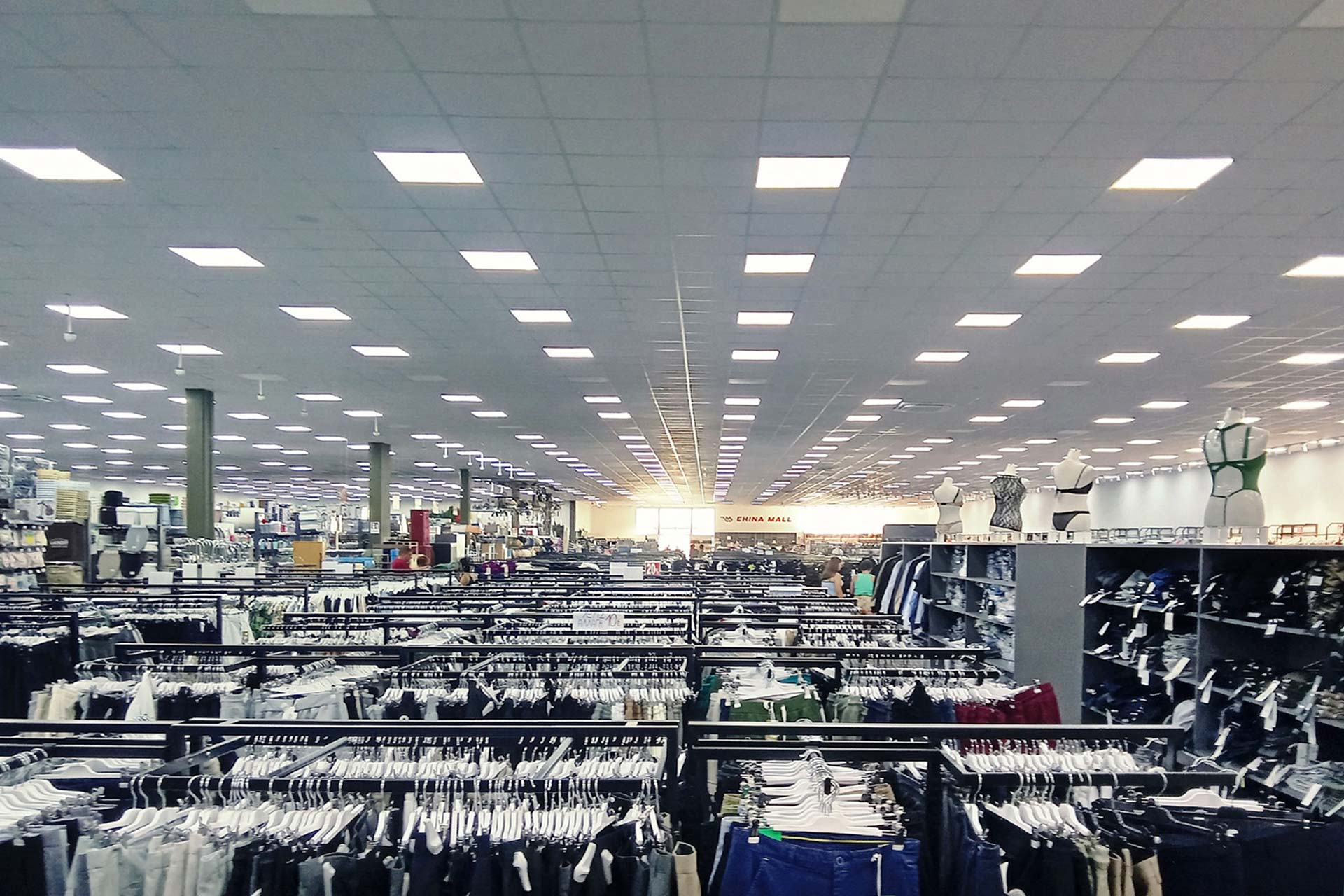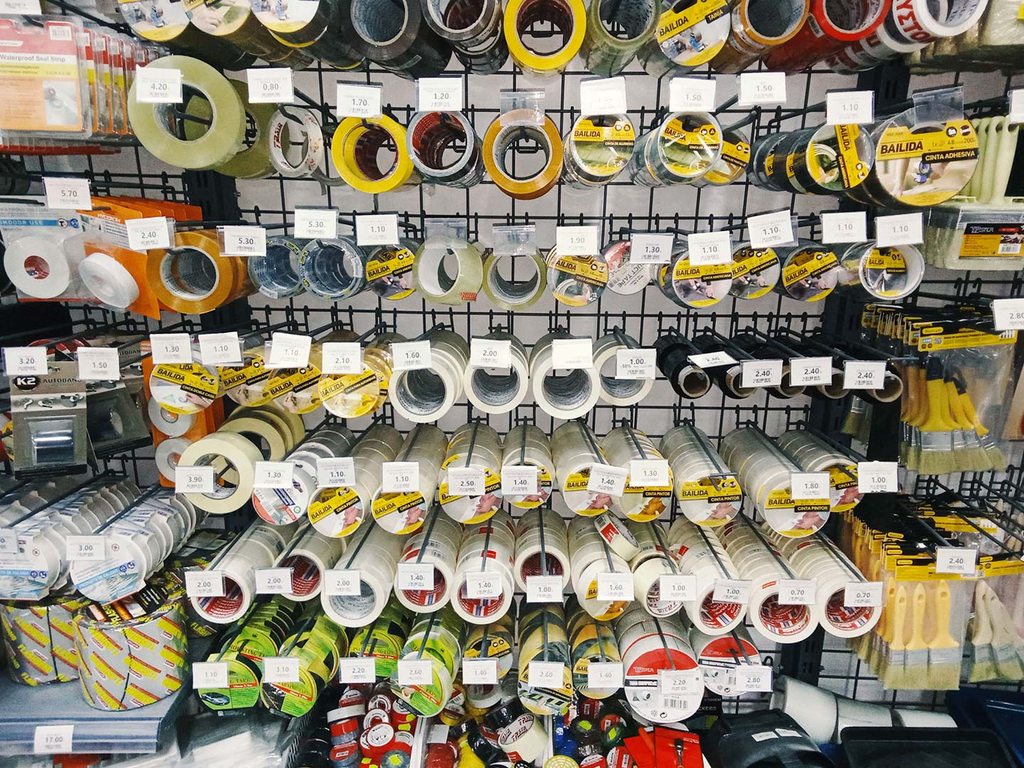 Σε αυτόν τον διάδρομο-αποθήκη εκτίθενται, με στρατιωτική ακρίβεια και ακαριαία αναγνωσιμότητα ανά είδος, δεκάδες χιλιάδες αντικείμενα ευρείας κατανάλωσης. Σχεδόν ό,τι μπορεί να συλλάβει ο νους: παιχνίδια, οικιακά σκεύη και είδη κουζίνας, χαρτικά και σχολικά, καλλυντικά και μικροεργαλεία, φωτιστικά, υαλικά, μπουρνούζια, παντόφλες, σαγιονάρες, φόρμες και εσώρουχα, παπούτσια και παπουτσοθήκες, τσάντες και πορτοφόλια, πλαστικά λουλούδια, κλουβιά για καναρίνια, εργαλεία για το σπίτι και το αυτοκίνητο, μέχρι και δώρα για ερωτευμένους. Ένα μικρό σύμπαν καθημερινότητας, ταξινομημένο σε σειρές που μοιάζουν να μην τελειώνουν.